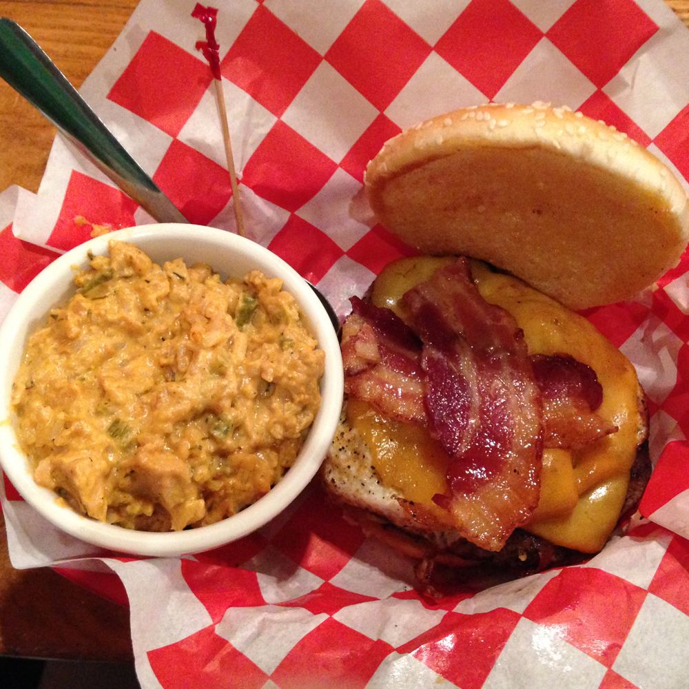 A creamy, decadent southern classic thrown on your burger? This marriage between two stand alone favorites offers a taste bud tango. Aubri Lane's and their yummy pimento cheese is mounded atop a 10 oz beef patty, topped with bacon, steak sauce, lettuce, tomato and red onion. It just hits the right spot. And, if you're still not full, their bread pudding is a hit among the locals!